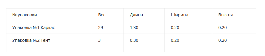• Тент: ткань oxford 240D PU 2000 (водостойкость 2000 мм водяного столба).